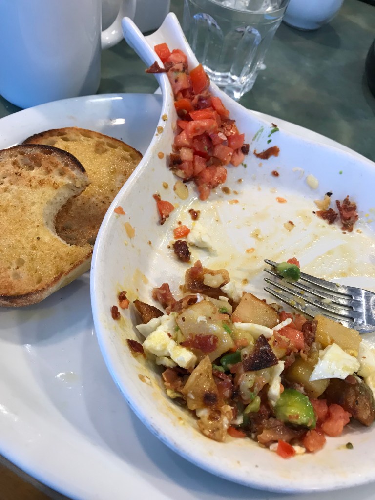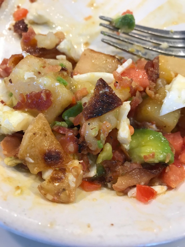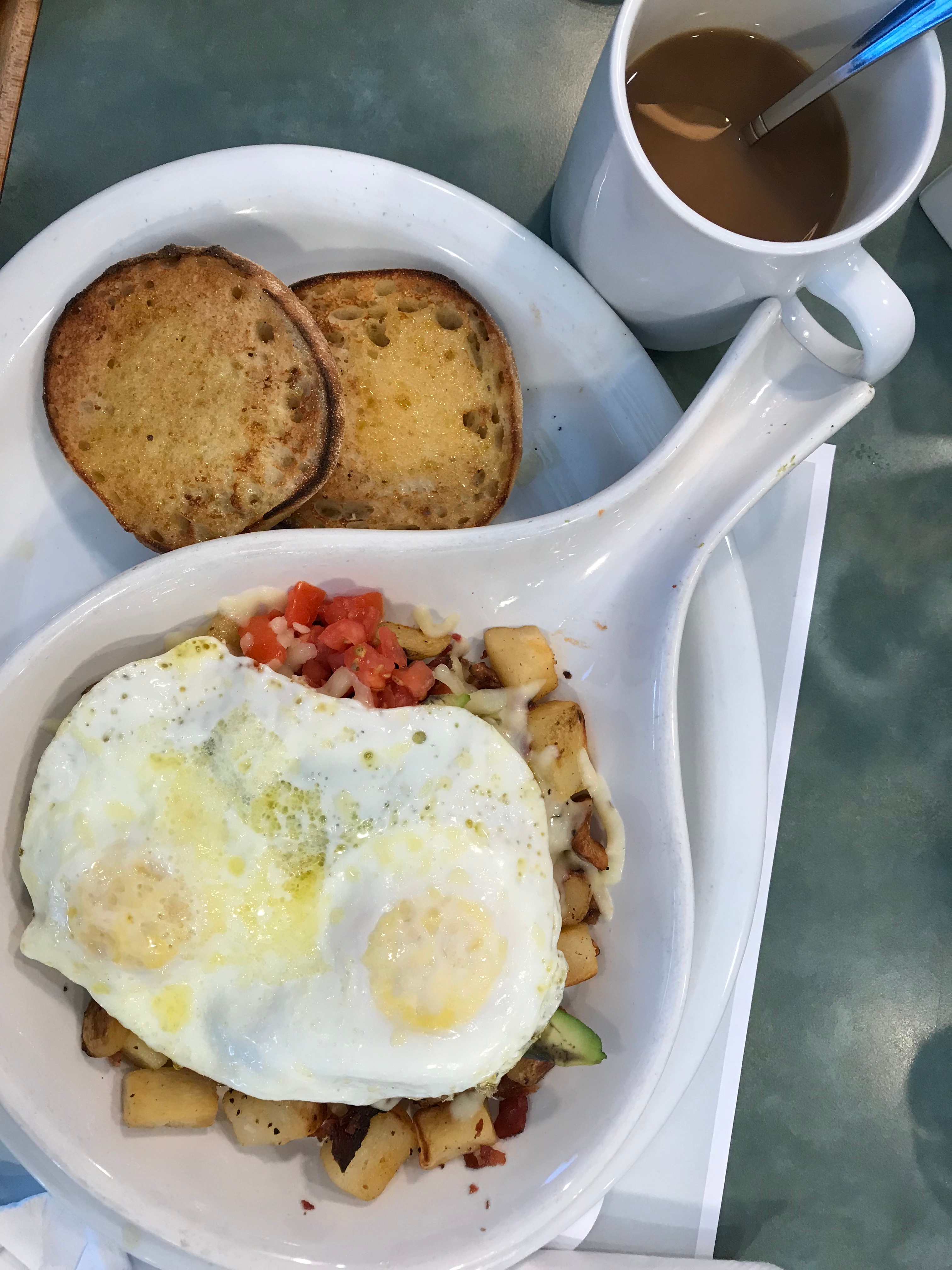 I have been to Turning Point more times than I can count at this point, and one of my favorite dishes, the Wilbur skillet, never gets old. This skillet is loaded with crushed bacon, potatoes, avacado, diced tomato, melted Monterey jack cheese, eggs your way, and an english muffin on the side. It is always cooked to perfection and I am always satisfied. This was my first time at the Hoboken location, and the view made my experience even more memorable.